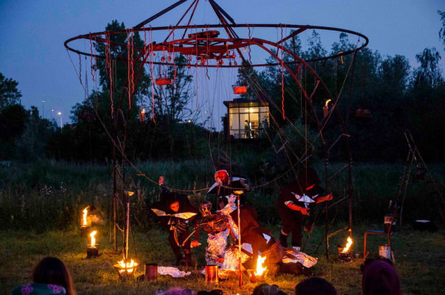 Et tant qu'à être là, le collectif Snowapple nous a invité.e.s sur leur festival international itinérant "Jardin Rouge" pour jouer le Solastarium et la danse enflammée d'Enclume, pour le festival de la Poésie dans le cadre des 50 ans d'existence du lieu "Vurige Tongen" . On joue donc dimanche 19 et lundi 20 mai !