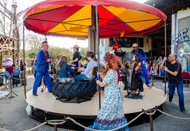Un parking forain accueillera pour l'occas' et pendant tout le week end des attractions qui devraient réveiller votre curiosité ! Alors laissez vous entraîner par les univers de Guinguette Paillettes, DJuk Box, et Princesses Circulaires (Bagarre, Cyclo Disco, Caddie Super) !